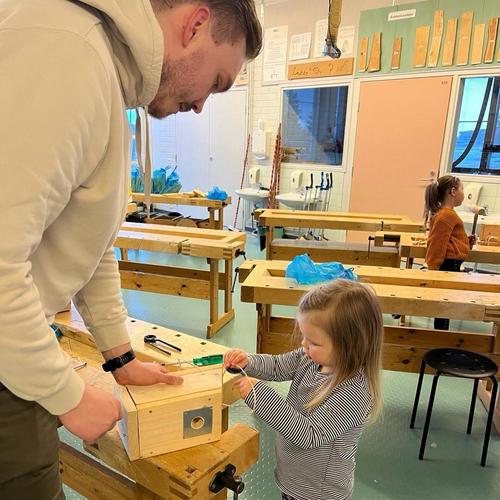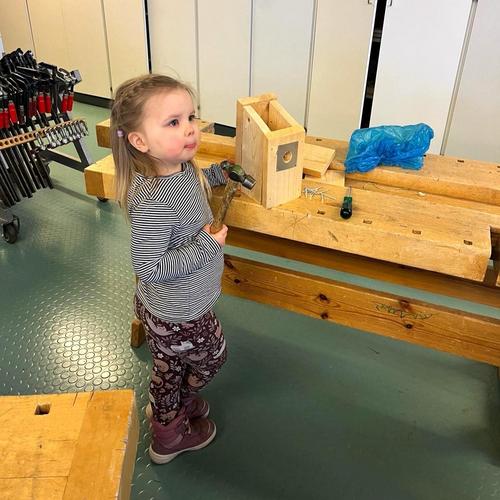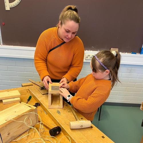 Koulun teknisentyönluokassa kävi kova naputus, kun lapset naulasivat pönttöjä kokoon yhdessä vanhemman tai isovanhemman kanssa. Tämä keväturakointi sopikin hyvin myös pikku-nikkareille sillä linnunpöntöt naulattiin jo valmiiksi sahatuista paloista. Mallia ja opastusta paikalla oli antamassa yhdistyksemme oma puheenjohta Leena.