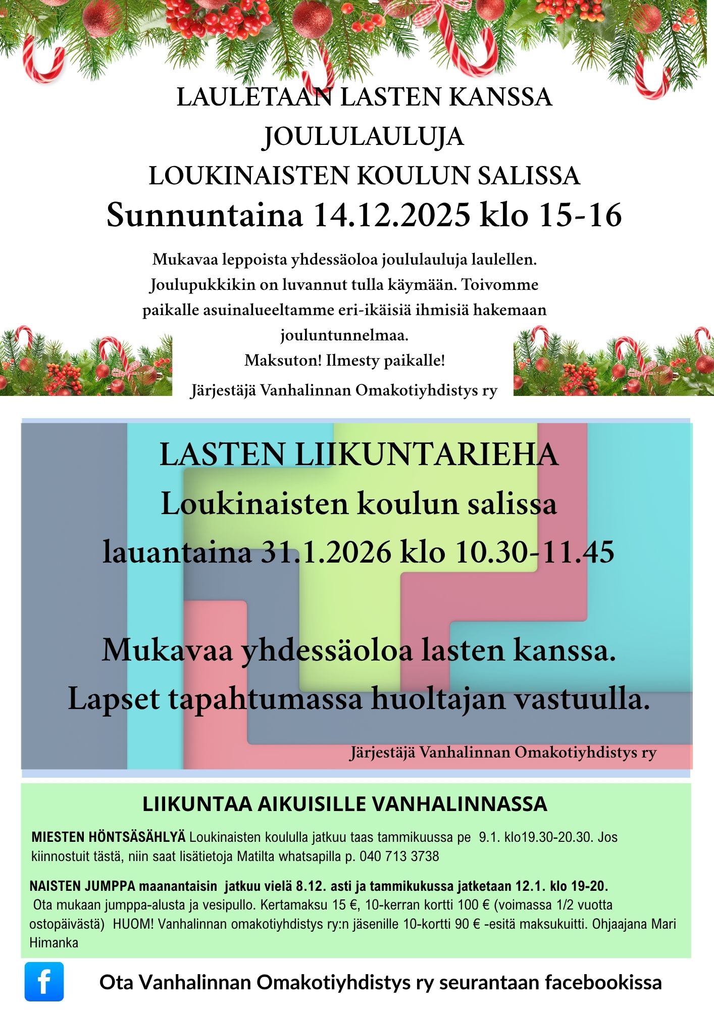 Jouluista tunnelmaa ja musiikkia on luvassa joulukuun 14. päivä kun Liedon Vanhalinna järjestää yhdessä koko perheen joululaulut -tapahtuman Loukinaisten koulun salissa.
